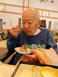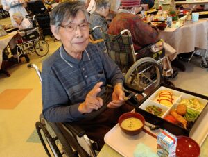 ボランティアのひまわり会様の演芸をご覧になった後、普段とは違う食事を召し上がり、ご満悦の様子が伺えました。