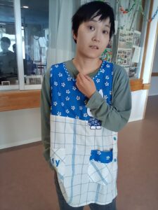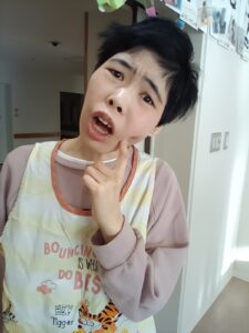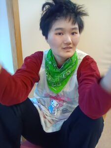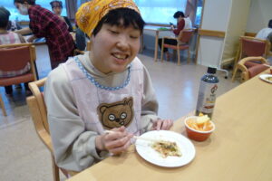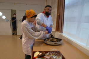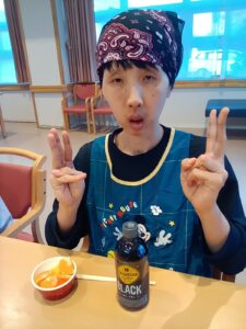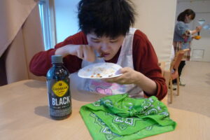 お好み焼きをフライ返しを使って、職員のサポートをもらいながらひっくり返しました😐