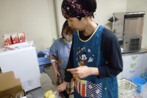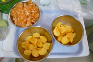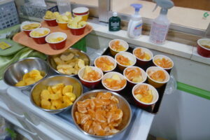 こちらは、新鮮なフルーツの皮を剥いて、食べやすい大きさに切って準備をしています😊