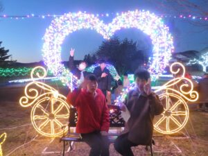 イルミネーション外出❄️ 12月19日 はちくら園の利用者さん みんなでイルミネーション外出に行きました。 バスに乗って向かった先は・・・ あ・ら・伊達な道の駅です❗ 冬の澄んだ空気の中で見る光はとても綺麗に見えました。🎄 「きれいだね」「暗くて怖かったけど、ピカピカ光ってた😊」等の声が聞こえて 寒さはありましたが、温かい気持ちになりました。