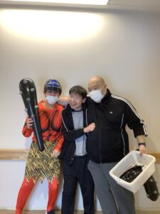 節分🫘 たんちょうユニット 令和8年2月3日 節分の日に鬼がやって来ました👹 豆を手にした皆さんは鬼に向かい 「鬼は~外!」と元気いっぱいに豆をまいていました 最後は鬼とお友達になり記念に1枚📸 福を招きいれるには相応しい、明るい1日でした😄
