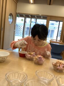 秋行事~スイーツ会~🍠せきれい・はくちょう🍠 9月29日にせきれい・はくちょうユニットの秋行事が開催されました。 午後は飾り付けられた食堂でデザートを召し上がりました🍨 職員と一緒にトッピング!とっても美味しそう☺ フォトスポットで記念撮影📸デザートやジュースで秋を感じました🍁 これからも様々な行事や園での様子を掲載していきます。