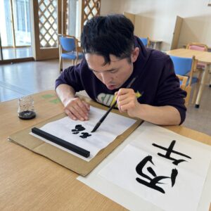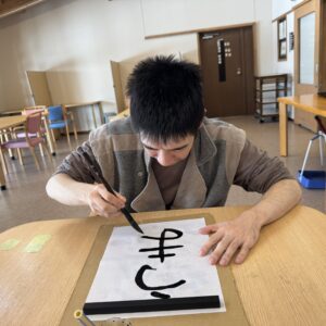 1月は好きな言葉や見本を見て書き初めを行ないました。