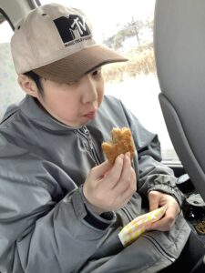 道路には雪が残っていましたが、晴れ間も見え、ドライブ日和でした☀️
