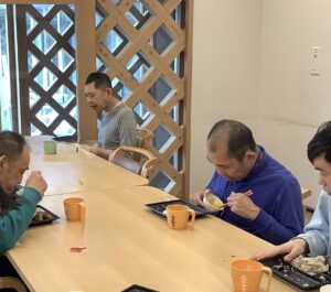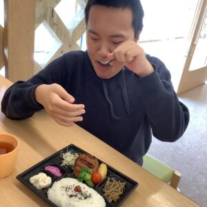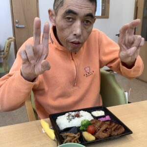 🍱外注食行事(お弁当)🍱 ひばり・うぐいす 11月27日、富谷市にある『あったかお箸ダイニング熊谷』さんから利用者様が好きなお弁当を注文し、食堂で召し上がりました! 利用者の皆様は食事を楽しまれ、完食した後には満足した表情がみられました。 12月17日はクリスマス・忘年会を開催する予定ですので楽しみにしていて下さい♪