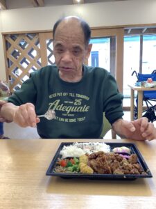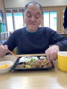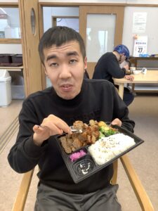 お弁当の日🍱 かりん・あおい 11月27日(木) 今日の昼食は美味しそうなお弁当を召し上がりました🤗 のり弁当、ハンバーグ弁当、サイコロステーキ弁当、どれも美味しそうですね🍱 いただきまーす! みなさんきれいに完食していました😋