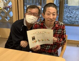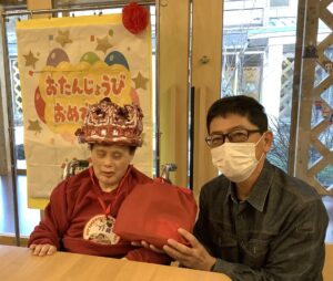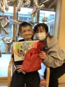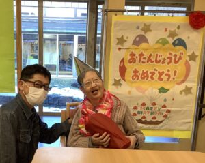 12月 誕生日会 12月に誕生日を迎える利用者様を対象に、誕生日会と部長・副部長・課長との懇談会を開催いたしました。 和やかな雰囲気の中で皆様からのお祝いの言葉と、職員から誕生日カードとプレゼントを受け取られ、大変喜ばれておりました。 これからの1年も皆様にとって健康で笑顔あふれるものとなりますように。 お誕生日おめでとうございます。