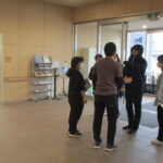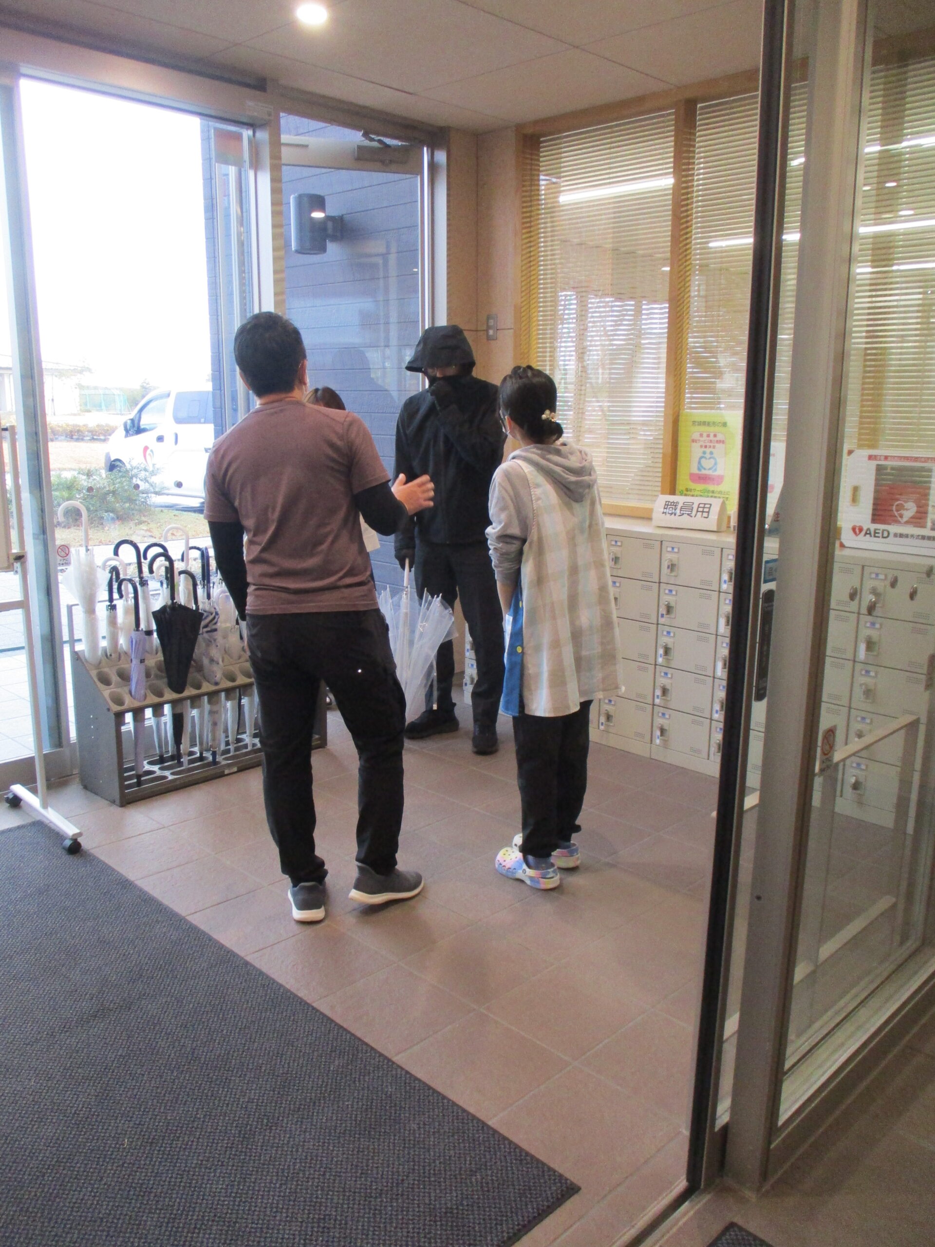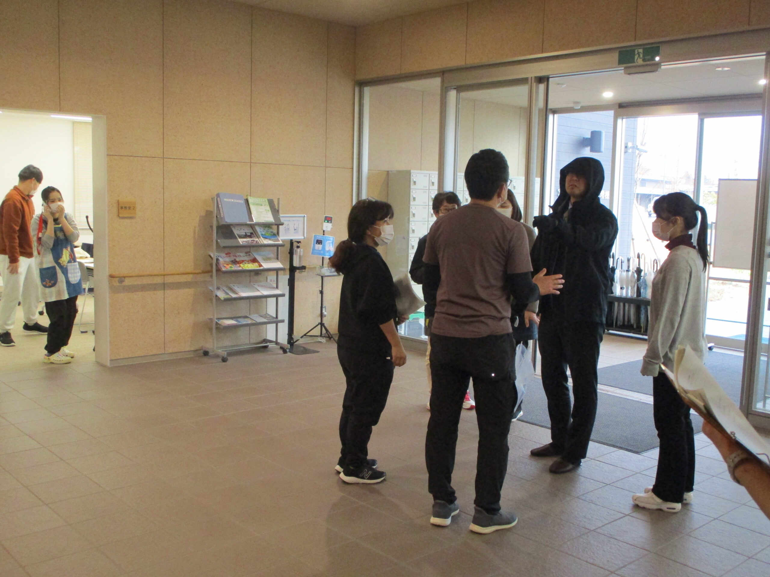 始めに、不審者が施設に来所したらどのように対応するか模擬訓練を行いました。