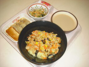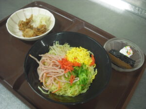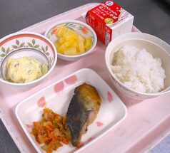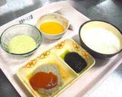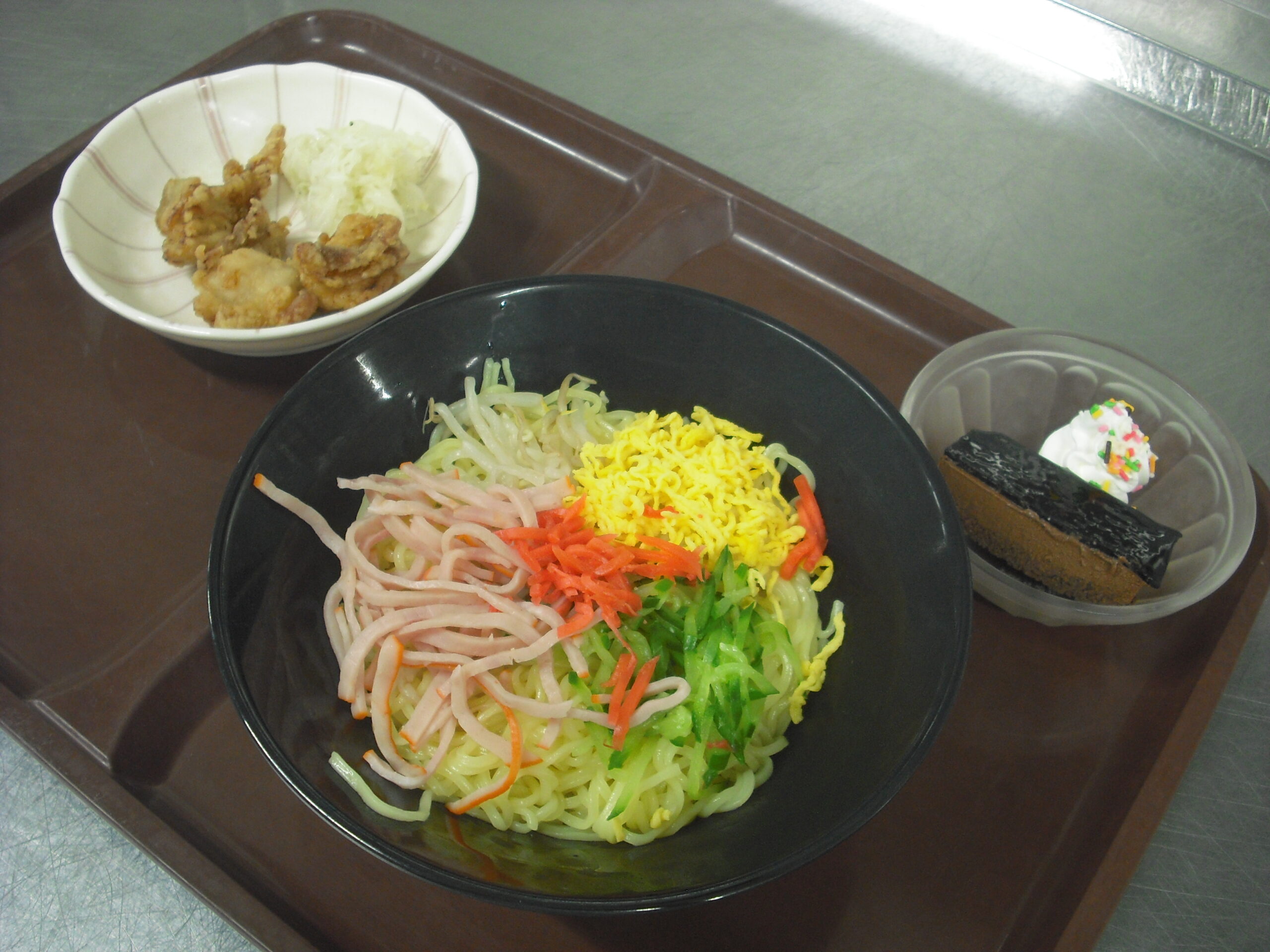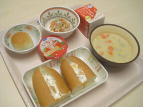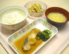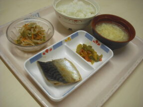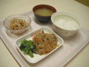 食事サービス課の取組み 食事サービス課の取り組み 利用者様との懇談会を実施し、利用者様の意見を食事に反映しています。 とんこつラーメン・餃子・小松菜のナムル・ジョア ごはん・かきたま汁・ほきのごまだれかけ・ さつまいものツナマヨサラダ ごはん・あじのトマトソースかけ・ ビーフンサラダ・黄桃缶・牛乳 ごはん・みそ汁・豚肉のポン酢炒め・ ごまドレサラダ フルーツサンド・鶏肉のクリーム煮・ イタリアンサラダ・いちごゼリー・牛乳 ごはん・かき玉汁・さばの味噌煮・ もやしのザーサイ和え 食事形態 利用者様の咀嚼や嚥下、健康状態に合わせた食形態で提供しています。 常食 きざみ食 極きざみ食 流動食 希望メニュー 利用者様との懇談会で希望メニューを決定し、委託業者と連携し提供しています。 冷やし中華・唐揚げ・チョコレートケーキ 味噌ラーメン・春巻き・チョコレートケーキ