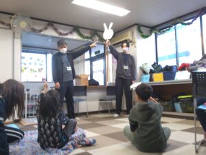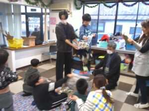 【希望の家】レクリエーション活動を行いました! 令和7年12月9日(火)色麻町の放課後等デイサービスぽけっと様へ訪問し、レクリエーション活動を行いました!リズム体操、後出しじゃんけん、虫取り網キャッチ、風船リレーと様々なレクリエーションを行わせていただきました。 放課後等デイサービスぽけっとの利用者様、職員の皆様、とても貴重なお時間をいただきありがとうございました! 希望の家では、余暇活動支援として福祉レクリエーション活動に関しての職員の派遣を行っております。お気軽にお問い合わせください。 後出しじゃんけんの様子 虫取り網キャッチの様子 風船バレーの様子 【お申し込み・お問い合わせ先】 宮城県七ツ森希望の家 支援係 TEL:022-345-3701